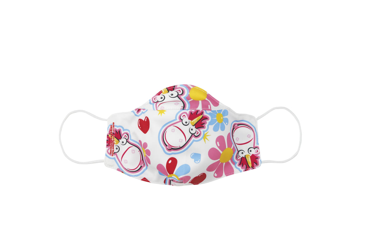 おめかしした「ハローキティ」デザインのキッズ用マスク。