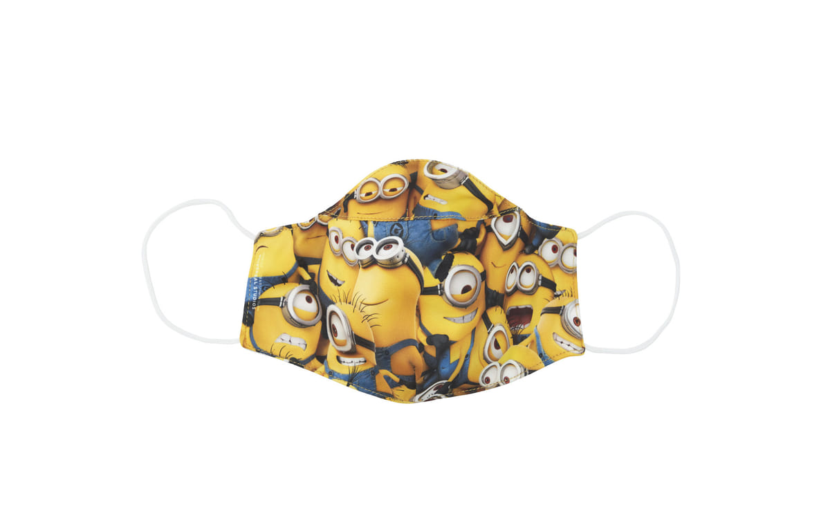 様々なポーズをきめる「ミニオン」たちがレイアウトされたキッズ用マスク。